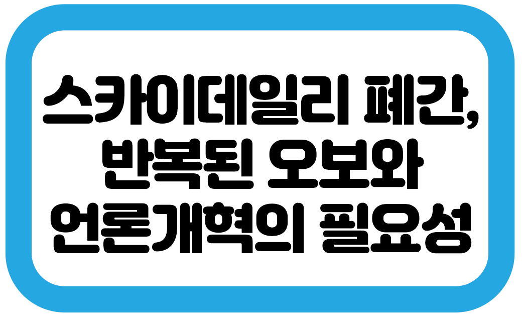 스카이데일리 폐간 사태는 단순히 한 언론사의 몰락으로 끝날 문제가 아닙니다. 이번 사건은 한국 언론 전반이 안고 있는 구조적 문제, 즉 검증되지 않은 보도와 상업적 자극주의가 얼마나 위험한 결과를 낳는지를 보여주었습니다.