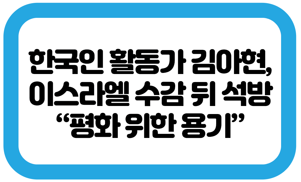 가자지구로 향하던 구호선박이 이스라엘군에 나포되면서 탑승한 한국인 활동가 김아현(필명 해초) 씨가 남부 네게브 사막의 케치오트교도소로 수감됐다가 이틀 만에 풀려났습니다. 인권단체들은 해당 교도소의 열악한 환경을 거듭 경고하며, 수감자들의 인권 보호를 촉구했습니다.